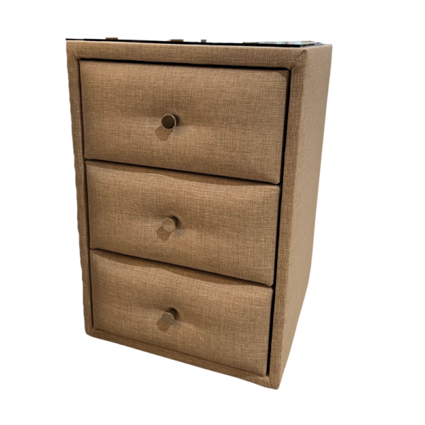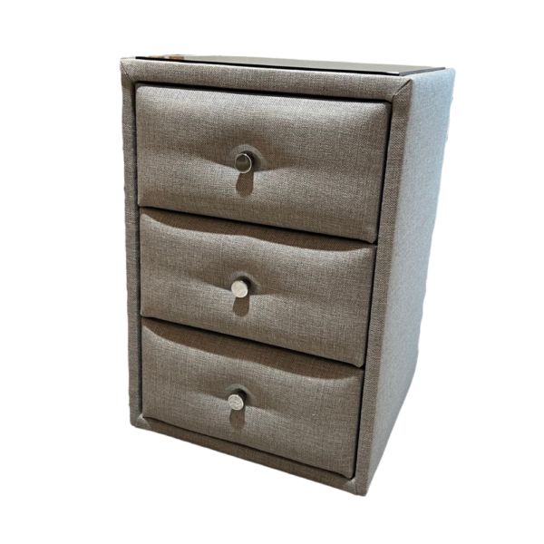 Dit nachtkastje is gemaakt uit stof en is verkrijgbaar op bestelling in 4 kleuren. Met glazen legplank voor bovenop het nachtkastje. Deze kan er ook afgehaald worden.